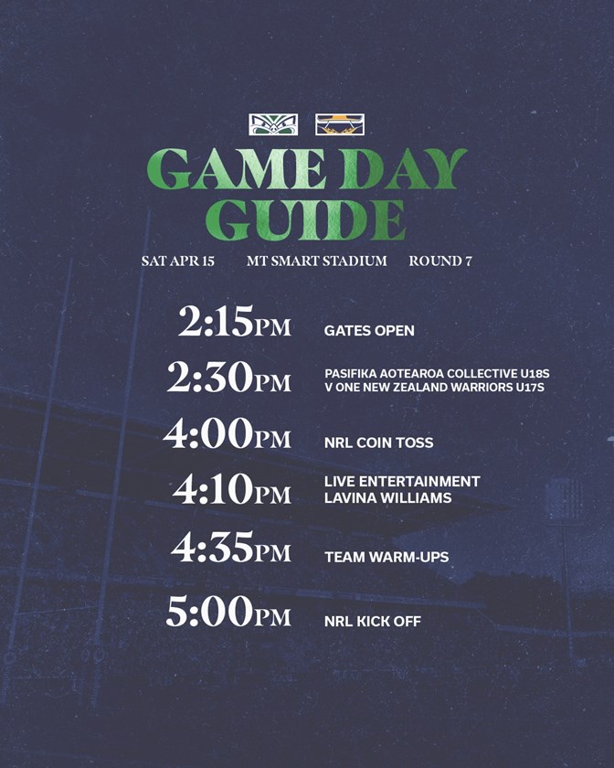 The last hour ahead of kick-off in the NRL fixture will include a live performance from singer Lavina Williams, formerly with top New Zealand ‘90s girl group Ma-V-Elle. She’s due on stage at 4.10pm.