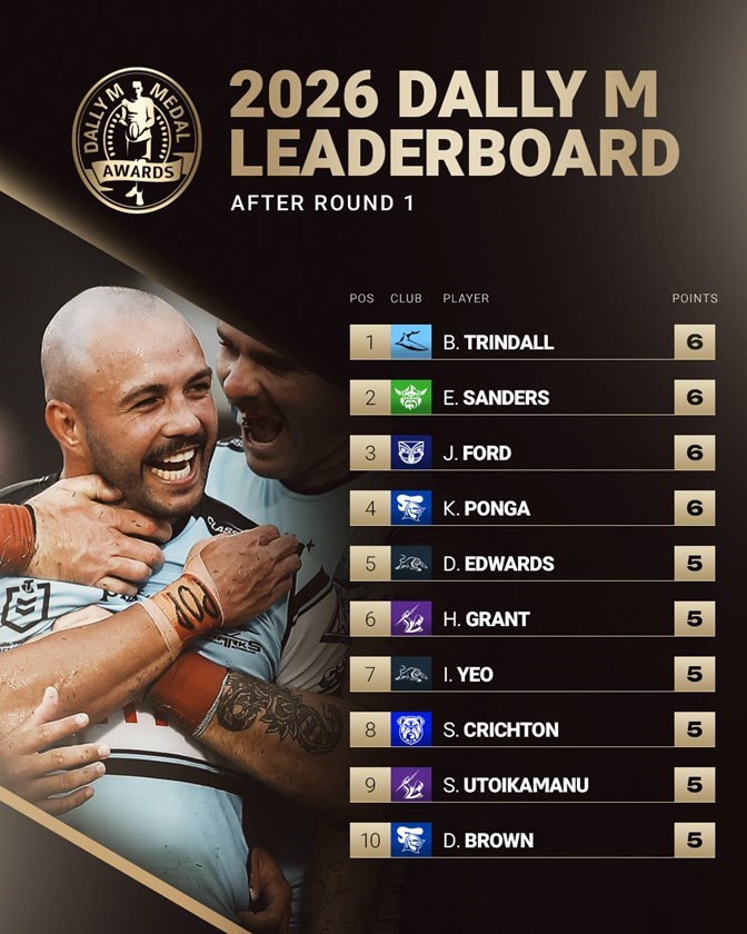The judges gave him the maximum six points while the other six were split between Roosters captain James Tedesco with three, Warriors winger Roger Tuivasa-Sheck with two and his teammate and standoff Tanah Boyd with one.
