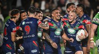 Seventh try incoming as Tanah Boyd drops perfect bomb for Dallin Watene-Zelezniak to soar, catch and score his second try.